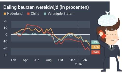 Voor het vierde kwartaal op rij groeide de Nederlandse economie, zo meldde het CPB recent. Ook voor de rest van het jaar zijn de vooruitzichten rooskleurig. Op de aandelenbeurs is niks van dit positivisme te merken. Voor beleggers in Nederlandse aandelen verloopt 2016 vooralsnog dramatisch. Waar komt die beursonrust vandaan en valt verbetering te verwachten?