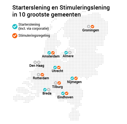 Op de website van het Stimuleringsfonds Volkshuisvesting, svn.nl, bereken je of je in aanmerking komt voor een starterslening of stimuleringslening. Ook kun je gelijk checken welke regeling jouw gemeente biedt.