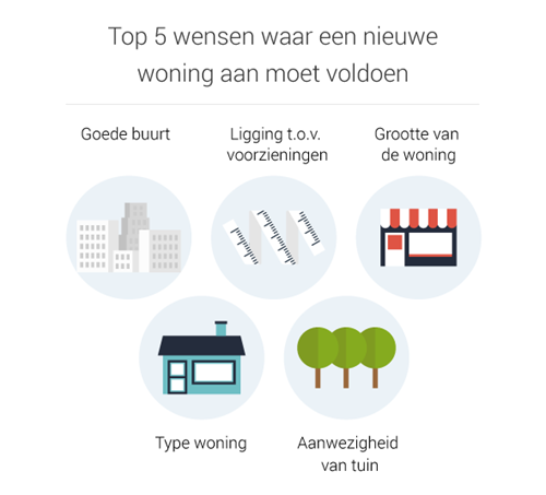 Neem vooraf de tijd om alleen, of samen met je partner, een lijstje te maken met de vijf aspecten waaraan je het meeste waarde hecht bij het bekijken van een nieuwe woning. Geef daarna die vijf aspecten een weging. Een voorbeeld van hoe dit werkt.