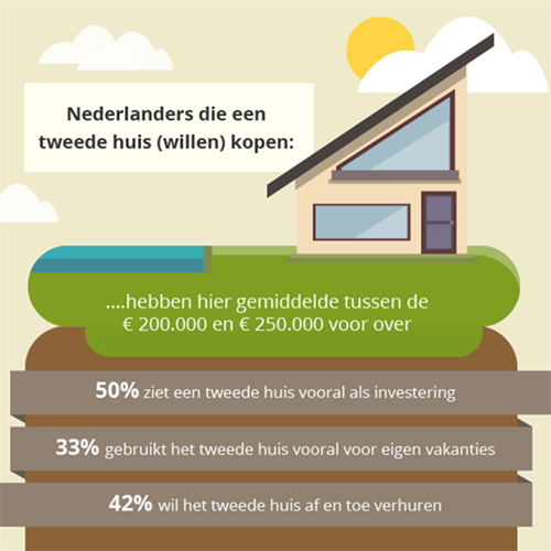 Wie droomt er niet van: een tweede huisje. Gezelligheid in een bungalow in Zeeland, uitwaaien bij het strandhuis op Texel of genieten van de rust op het platteland. Naast het weekendbezoek heb je ook meteen een bestemming voor je zomervakantie. Precieze cijfers zijn niet bekend, maar geschat wordt dat zo’n 3 procent van de Nederlanders een vakantiewoning bezit. Een tweede huis klinkt goed, maar hoe zit het met de financiĂ«le kant hiervan?Â