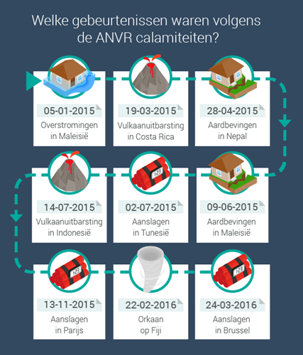 Reisbranchevereniging ANVR beheert het zogeheten calamiteitenfonds. Voor 2,50 per boeking kun je je verzekeren tegen de kosten van een annulering bij een calamiteit. Dat kunnen terroristische aanslagen zijn, maar bijvoorbeeld ook natuurrampen. Het reisbureau moet dan wel aangesloten zijn bij de ANVR. De prijs is per boeking, voor een heel gezin blijven de kosten dus slechts € 2,50.