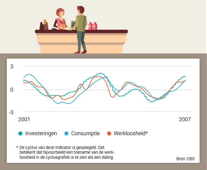 “Het conjunctuurdashboard”. Dit is een overzicht, ontwikkeld door het CBS, dat toont hoe goed het gaat met Nederland. Wat het dashboard ons op dit moment laat zien, zijn groene lijntjes. Groen staat voor: het gaat goed in Nederland! Maar wat het CBS niet registreert is: hoe lang zal het nog goed gaan. Toch kunnen we daar op basis van de grafieken ook iets over zeggen.