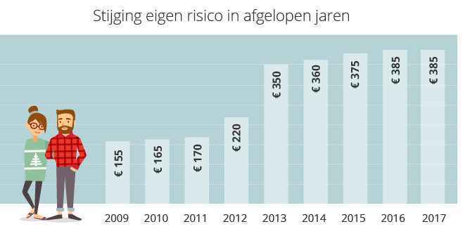 In de afgelopen jaren werd jaar op jaar het eigen risico verhoogd. Soms met forse stappen. Bijvoorbeeld in 2013, destijds gingen de kosten die je zelf draagt met maar liefst € 130 omhoog ten opzichte van het jaar ervoor.