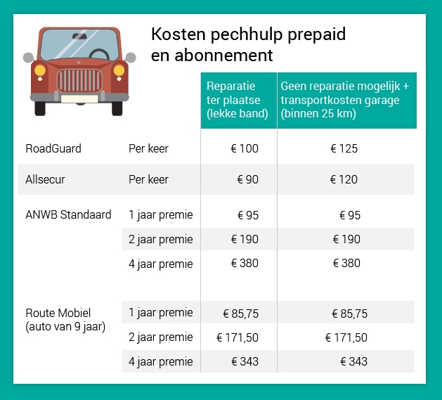 Of je met prepaid pechhulp goedkoper uit bent, hangt helemaal af van het aantal keer dat je daadwerkelijk autopech hebt. Bij bijvoorbeeld vier keer een lekke band in één jaar heb je juist hogere kosten (€ 360 / € 400) dan wanneer je dat jaar een abonnement had.
