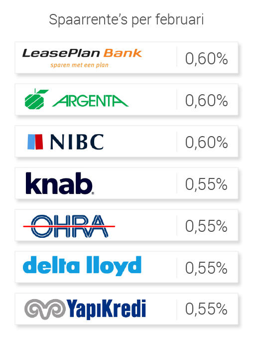 Als we de nu bekende wijzigingen van de spaarrente meenemen, bieden deze banken vanaf februari de hoogste spaarrente: