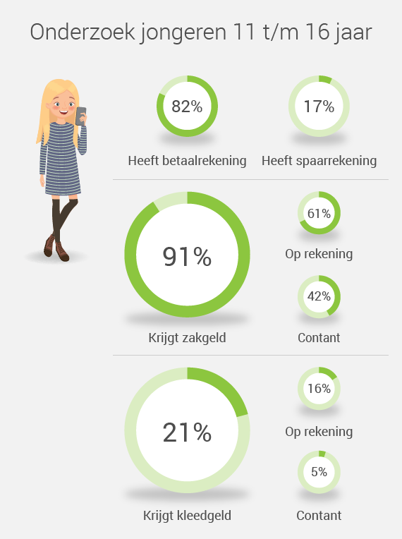Overheidsplatform Wijzer in Geldzaken onderzocht hoeveel zakgeld kinderen (van 11 t/m 16 jaar) krijgen en hoe deze groep met geldzaken omgaat.