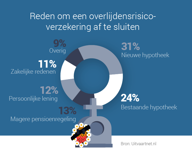 Een hypotheek is niet de enige reden waarom mensen een overlijdensrisicoverzekering afsluiten. Het is wel de belangrijkste, zo blijkt uit onderzoek van een bemiddelaar in uitvaartverzekeringen. Een overlijdensrisicoverzekering is bovendien lang zo duur niet meer als enkele jaren geleden.