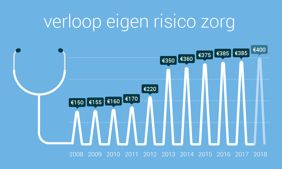 In 2008 bedroeg het eigen risico nog maar € 150. Met uitzondering van afgelopen jaar is het tarief sinds 2008 elk jaar gestegen. In de verkiezingstijd werd juist gesproken over het verlagen of zelfs afschaffen van het eigen risico. Plannen die in de praktijk een moeilijk overbrugbaar gat in de overheidsbegroting slaan.
