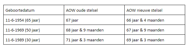Verhoging AOW-leeftijd in oude en nieuwe stelsel