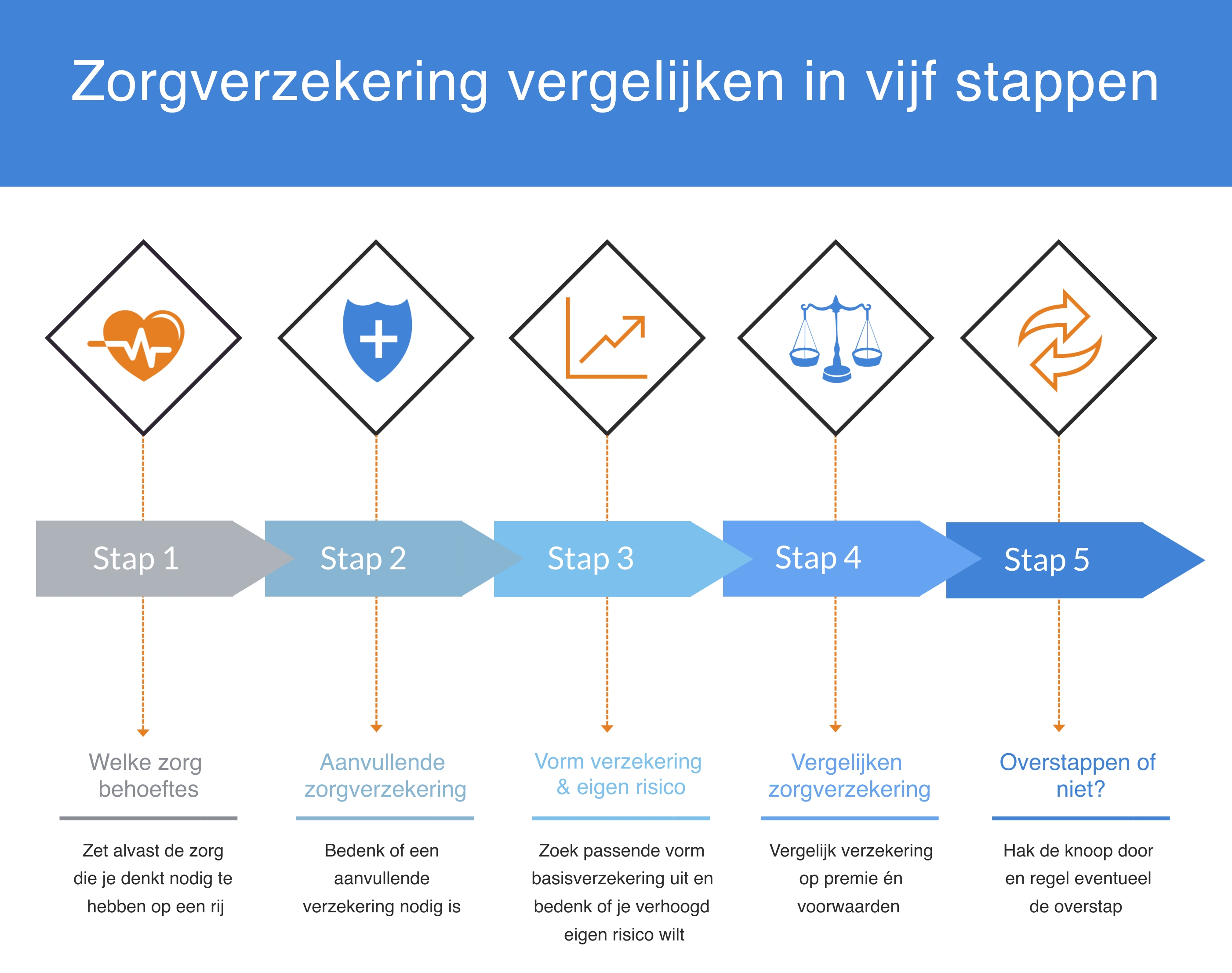 In deze stap is het tijd om de zorgverzekeringen te vergelijken. Staar je niet blind op de premie van de basis zorgverzekering. Kijk ook wat de aanvullende verzekering kost, wat deze dekt en of er beperkende voorwaarden gelden. Vergeet bij het vergelijken niet te controleren bij welke zorgaanbieders je terecht kunt. Wil je graag naar het ziekenhuis bij jou in de buurt? Kies dan voor een verzekeraar die afspraken heeft met dat ziekenhuis, zodat je niet het risico loopt op een gepeperde rekening die je uit eigen zak moet betalen.